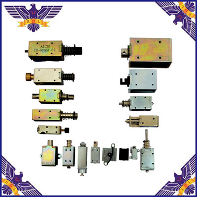 ②油浸式電磁鐵。油浸式電磁鐵的線圈和鐵芯都浸在無壓油液中。推桿和銜鐵端部都裝有密封圈。可協助線圈散熱,且可改進推桿的光滑條件,所以壽數遠比干式電磁鐵為長。因有多處密封,此種電磁鐵的靈 敏性較差,造價較高。